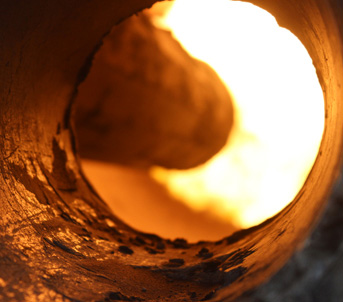 鋰礦等原料與其它混合料混合后的原料從窯尾筒體高溫進(jìn)入筒體內(nèi)進(jìn)行焙燒。物料在陪燒窯內(nèi),受窯體斜度和自轉(zhuǎn)的影響,產(chǎn)生徑向和橫向的移動(dòng),物料被帶到高處,與高溫?zé)煔膺M(jìn)行熱交換,進(jìn)而產(chǎn)生熱工反應(yīng),進(jìn)而達(dá)到焙燒的目的。窯轉(zhuǎn)速受變頻電機(jī)調(diào)節(jié),可根據(jù)反應(yīng)物料反應(yīng)時(shí)間的要求進(jìn)行調(diào)節(jié)窯內(nèi)停留時(shí)間,燃燒器配備天然氣流量和風(fēng)量監(jiān)控和調(diào)節(jié)功能,滿足煙氣溫度和流量流速的調(diào)節(jié)功能,進(jìn)而適應(yīng)原料的焙燒區(qū)間溫度。