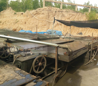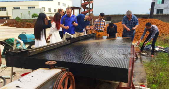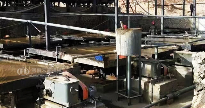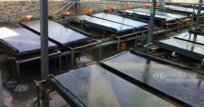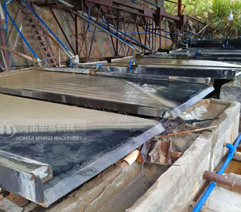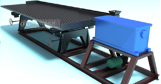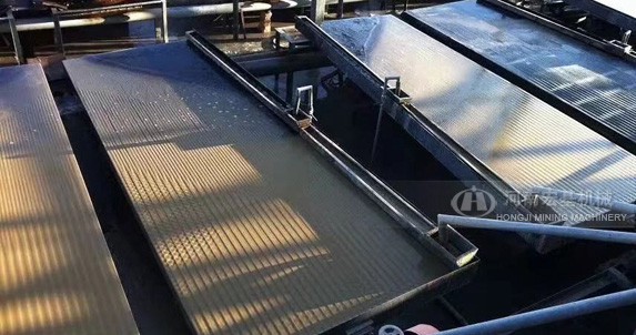 搖床選礦是在一個(gè)傾斜的床面上借助機(jī)械石板對(duì)稱往復(fù)運(yùn)動(dòng)和薄層斜面水流等聯(lián)合作用,使礦粒在床面上松散分層,分帶,從而使礦物按密度不同來進(jìn)行分選的過程。